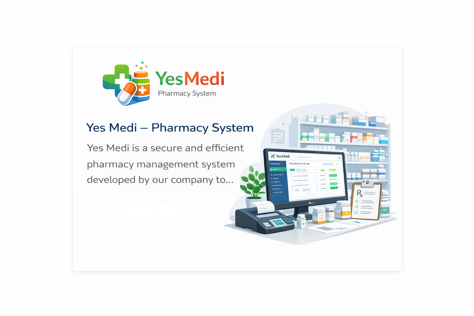 Yes Medi is a secure and efficient pharmacy management system developed by our company to simplify medical store operations. This system helps manage medicines, sales, inventory, customers, and reports in one centralized platform. It is user-friendly, fast, and designed to ensure accuracy, security, and smooth day-to-day pharmacy management.